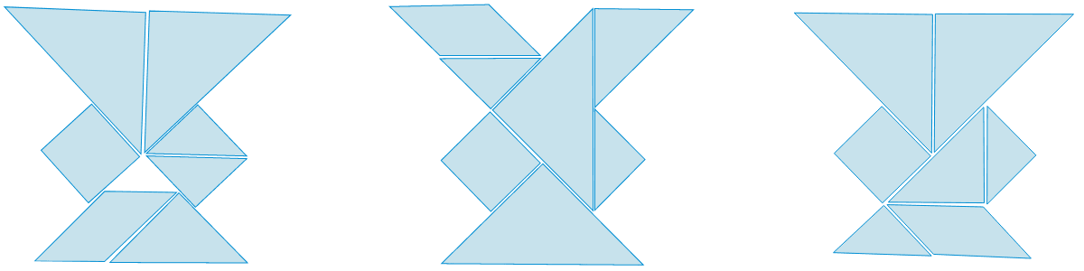 It is the same with design solutions. You work with many possible solutions to arrive at a selection that best suits the needs of your participants. All your iterations are related to each other, but none is identical. Instead, they build on one another, just as all tangrams are built from the same seven shapes into an infinite variety of finished creations.