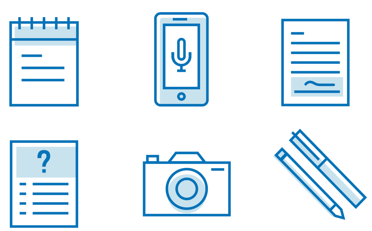 The equipment for this kind of research is simple and low-tech. Don’t bring your laptop into an interview unless absolutely necessary. And do not use it to take notes. Instead, notes should be hand-written. If you have received consent to capture audio, use a recording device, such as a smartphone. Reserve a quiet, private room or wherever your participant feels comfortable. This may be in the participant’s home, at office, or in a public place of the participant’s choosing. No matter where the interview takes place, try to create a safe, comfortable, and quiet space where your participant can speak honestly about the subject.