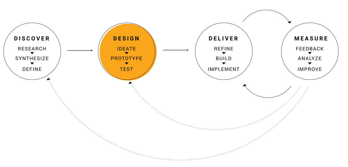 You’ve presented the opportunities to your key audience and gained consensus about which set of opportunities to address. Now you are ready to move to Design. This is the HCD phase wherein you partner with designers to prototype products, services, or systems that address the opportunities.