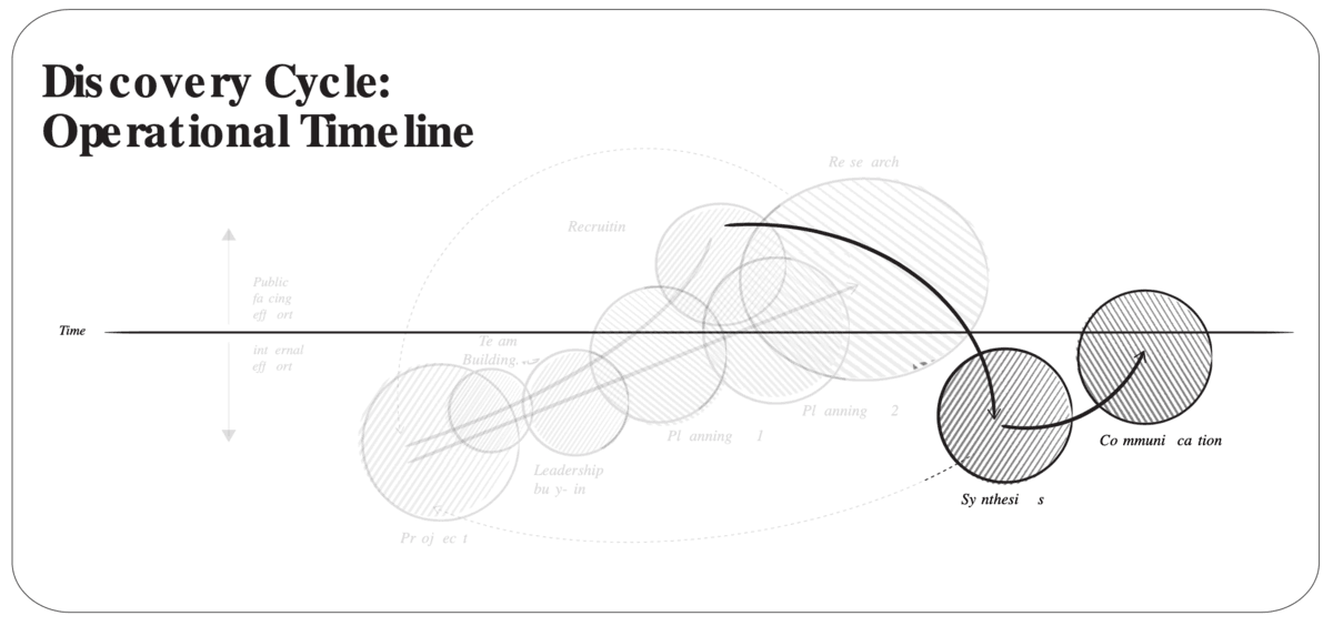 Think of synthesis as a group effort to filter all of your field data through the lens of the project brief. Take each interview or workshop or observation, and during synthesis, look at them through the single, project brief lens, to focus the research together according to patterns, similarities, or dissimilarities, to identify data that is most relevant to the research topic. Then, reflect on the relevant data and work to identify common patterns or trends.